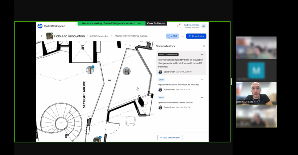 We are validating the gap of a centralized versioning system throughout the project: while architects look for a simpler alternative to complex tools like Bluebeam, builders need practical control and traceability adapted to the work.