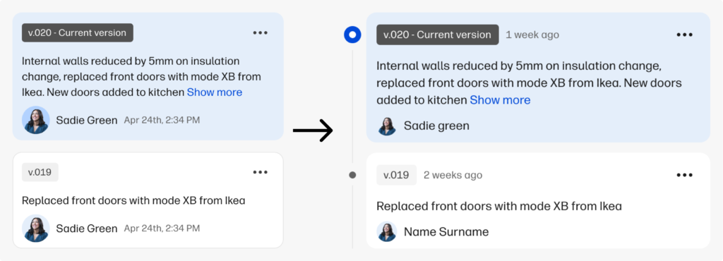 The principal design challenge was to translate the context from the review box that architects use to track changes in their drawings, to something easily scanable, data-rich and scalable.