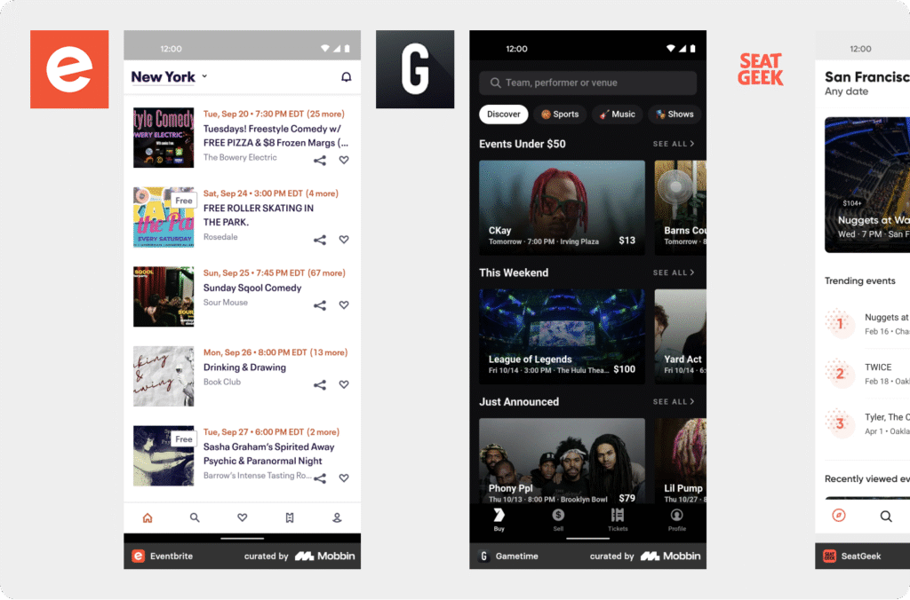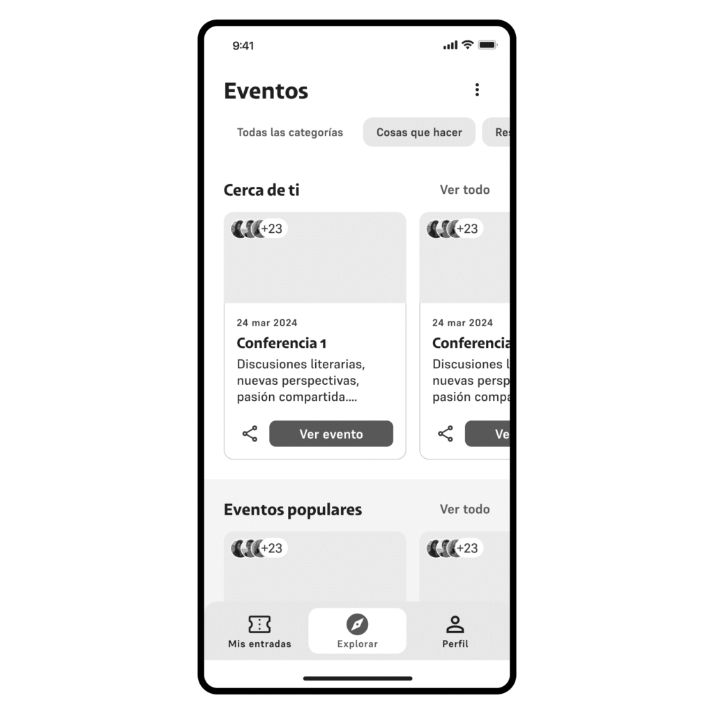 We show you a landing page with different events, divided into categories, to encourage discovery and navigation.