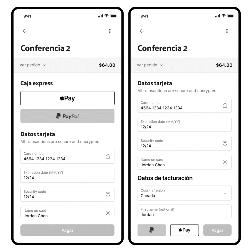 Once the seats have been selected, It is passed to the payment gateway. At first, it was proposed to add quick payment options at the top of the interface, but an iteration was carried out to unify the payment methods in the same cluster. Once the purchase is made, the user could access the “my tickets” flow, where they find all the details of their events and purchases.