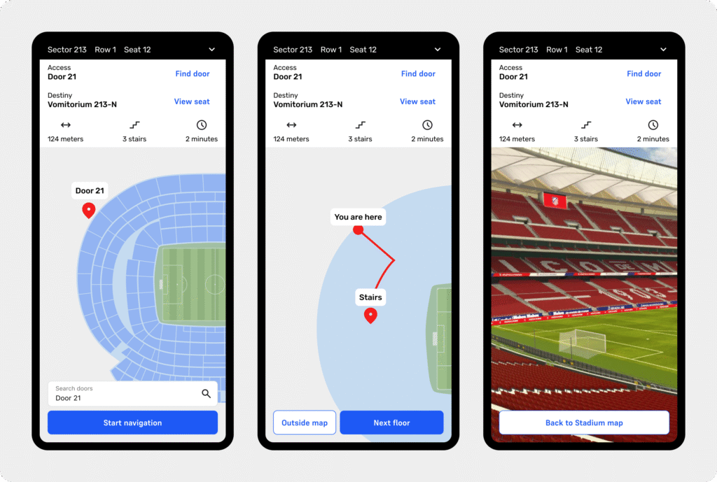 Stadium visitors, especially those attending a one-time event, often struggled to find their seats due to complex architectural layouts with multiple floors, corridors, and vomitories. The existing experience lacked guidance, creating confusion, stress, and bottlenecks.
